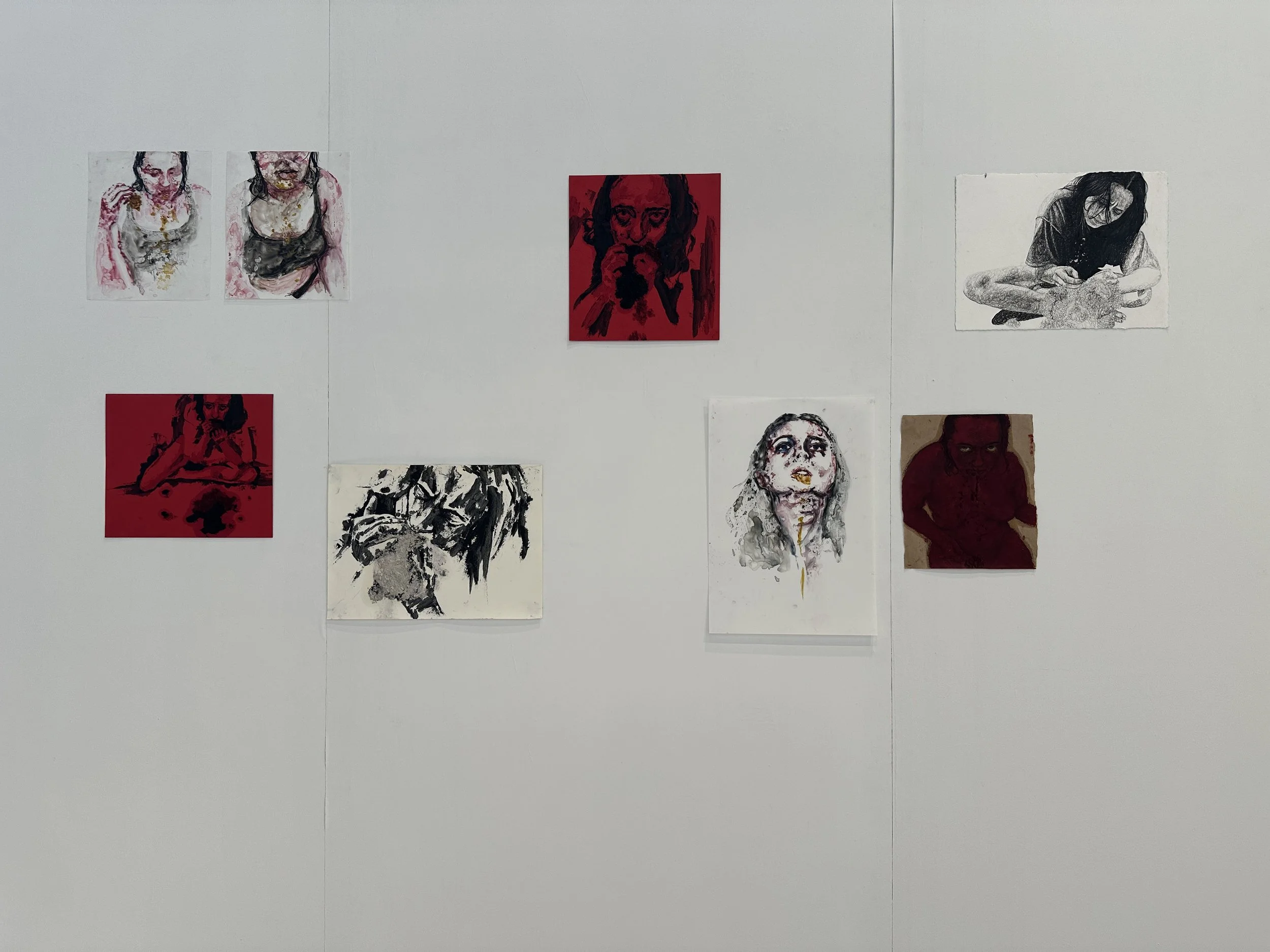 In the fall of 2023 while considering the themes of my senior thesis, I had a dream in which I compulsively consumed a cherished childhood stuffed animal and, upon realizing what I had done, regurgitated the remains and attempted to sew the pieces back together. These pieces illustrate the various stages of this dream, ending with Repairs. The piece illustrates the struggle to recover aspects of childhood and the younger self which are naturally damaged or lost during the process of growing up.